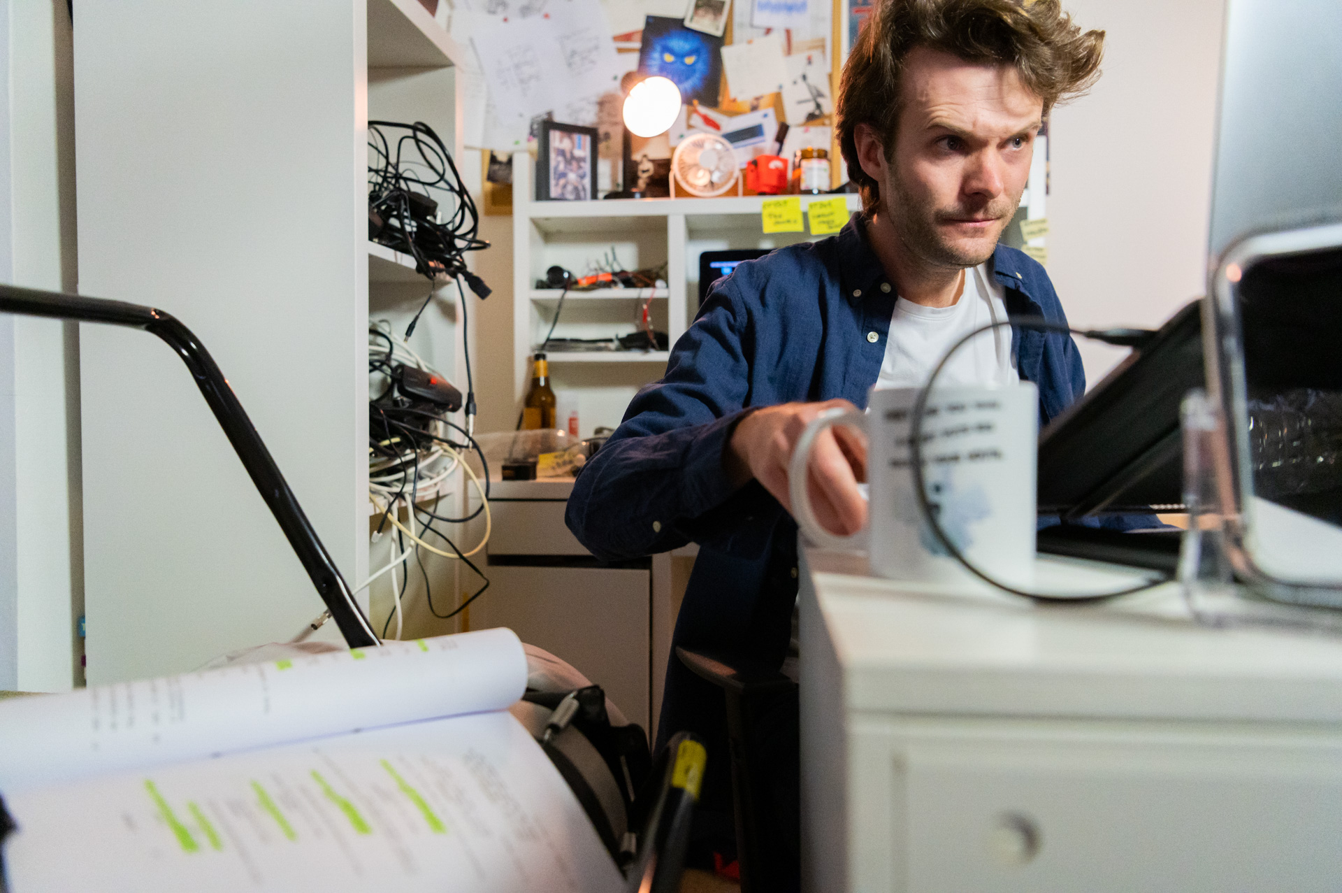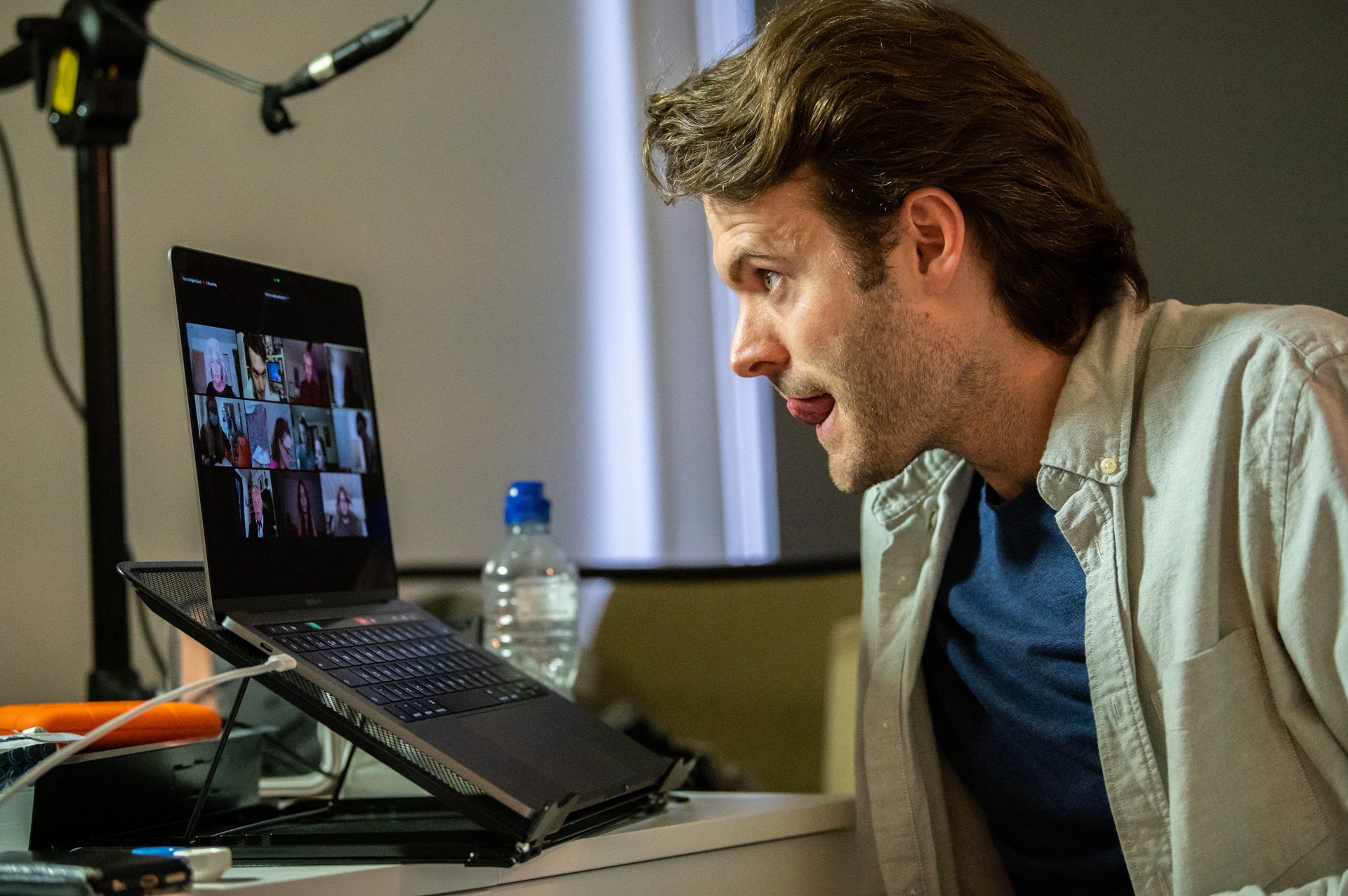 It was a peculiar and challenging experience for me, I must say. Not only were there very few crew and cast, but the cast that did exist were almost all on a zoom call and there’s only so many times you can photograph a laptop screen. On top of that, the four to six members of crew and cast that were physically present, all had to be socially distanced and had to wear their masks when possible [actors were exempt as they wouldn’t have been able to do their jobs effectively], meaning the variety of stills that I would normally do just wasn’t an option.